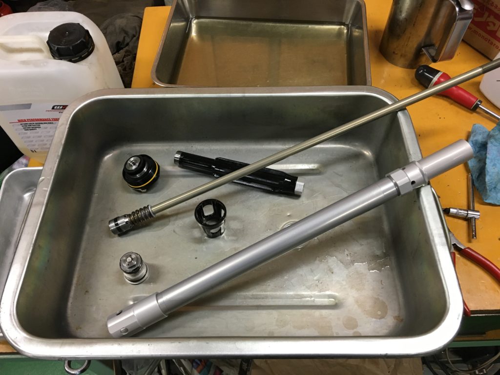 一昨日から、作業はWPのフロントフォークの整備ちう。