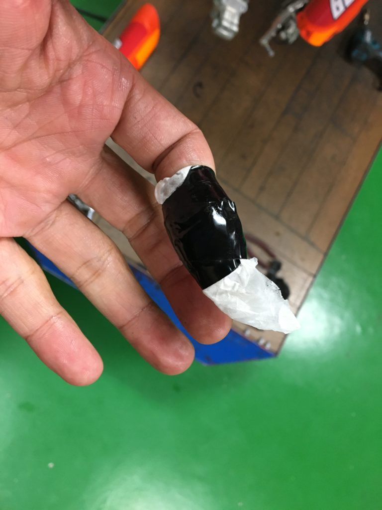 作業ちうに左手の人差し指を潰して、ぱっくり割れました。