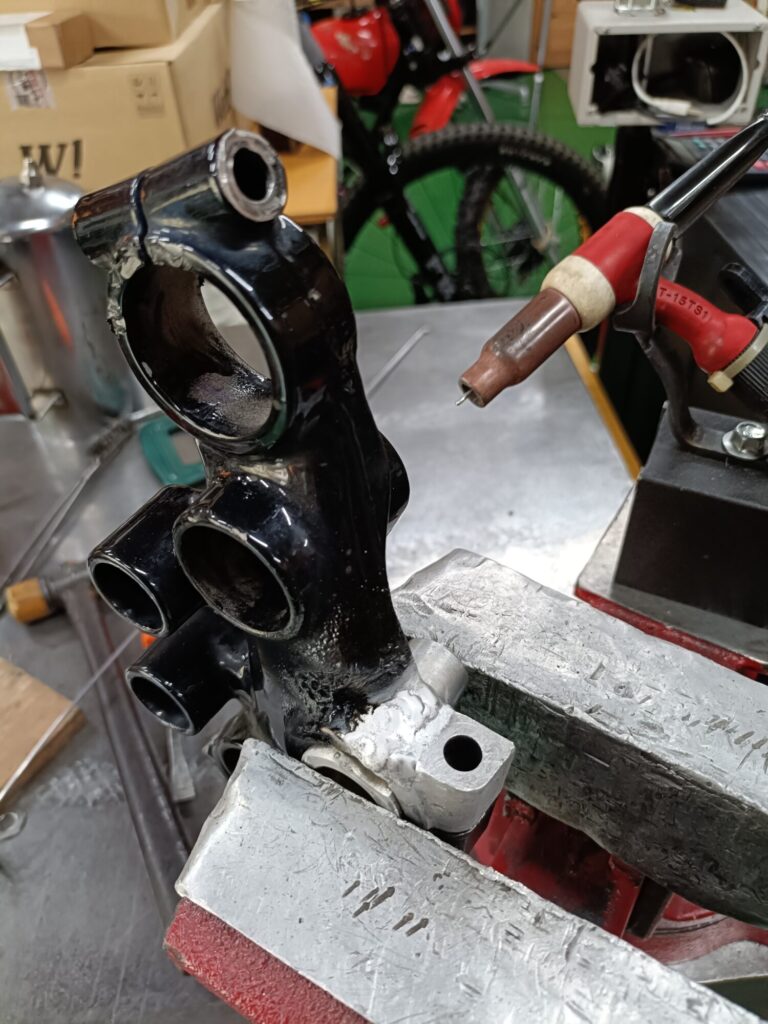 狭い所に無理矢理トーチを突っ込んで溶接。