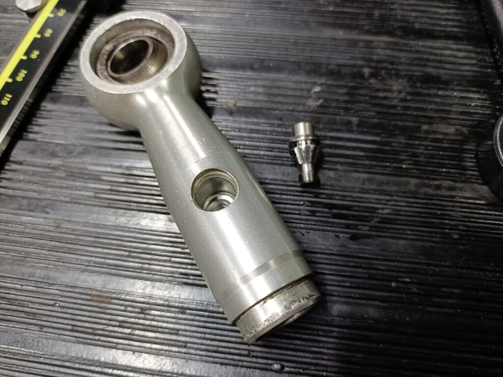 新しくネジを切ったフランジ付きの部品を裏側(?)から