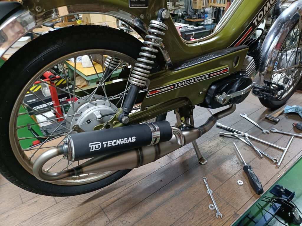 トモスのクラッシク、フルエキゾーストで組み替えです。
