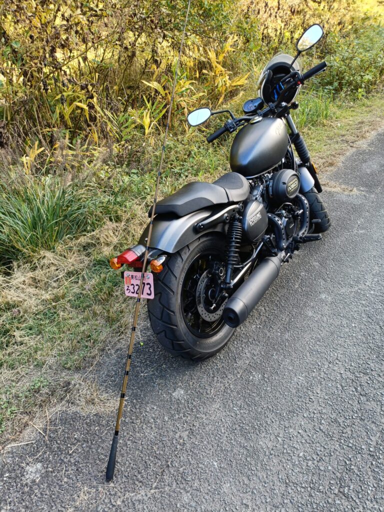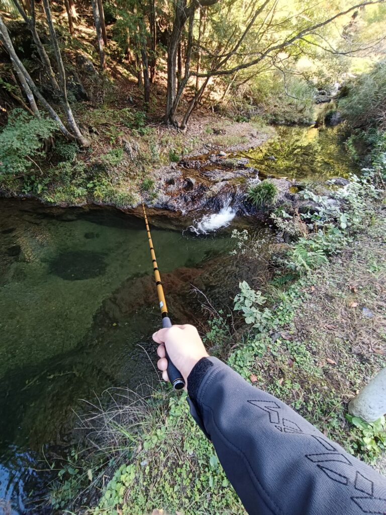 川っぺりを走っていて、うっかり背中に仕込んだ竿を出して
