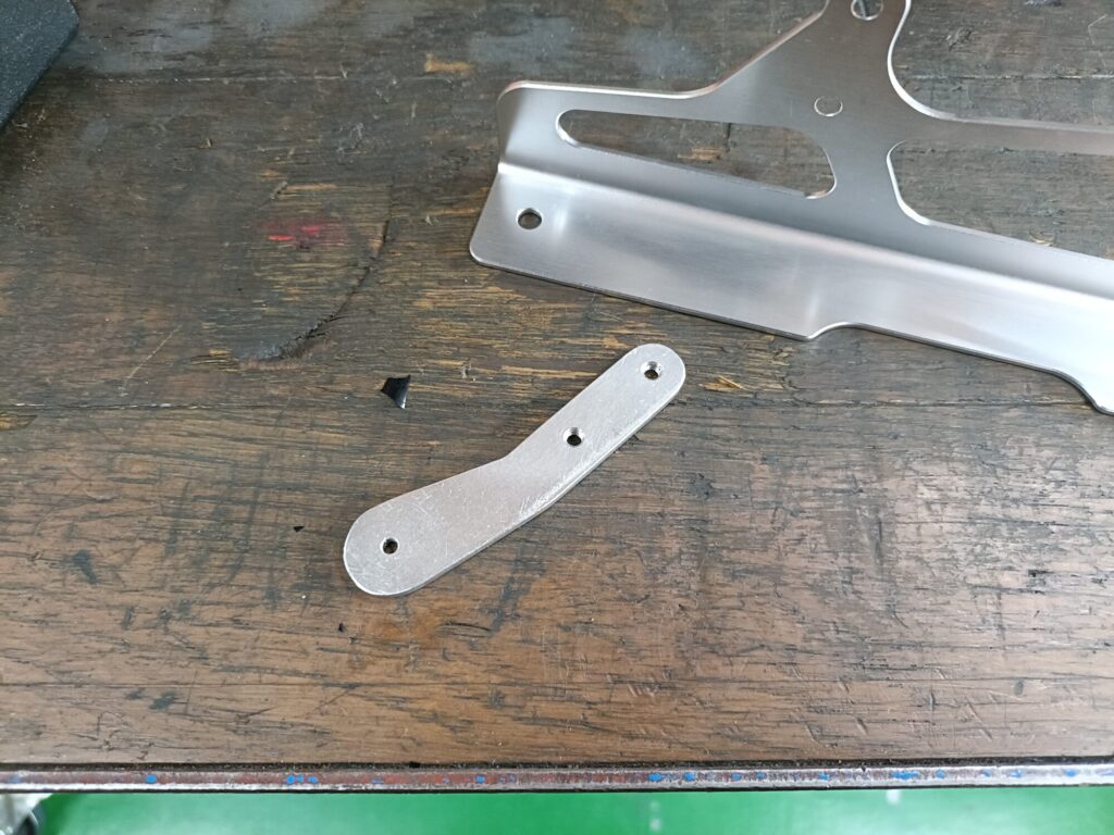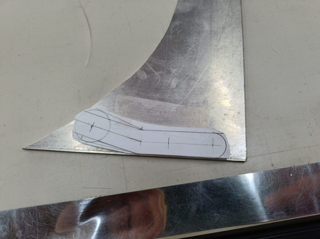 出来た型紙を切りでして、ステー材料のアルミ板に転写。