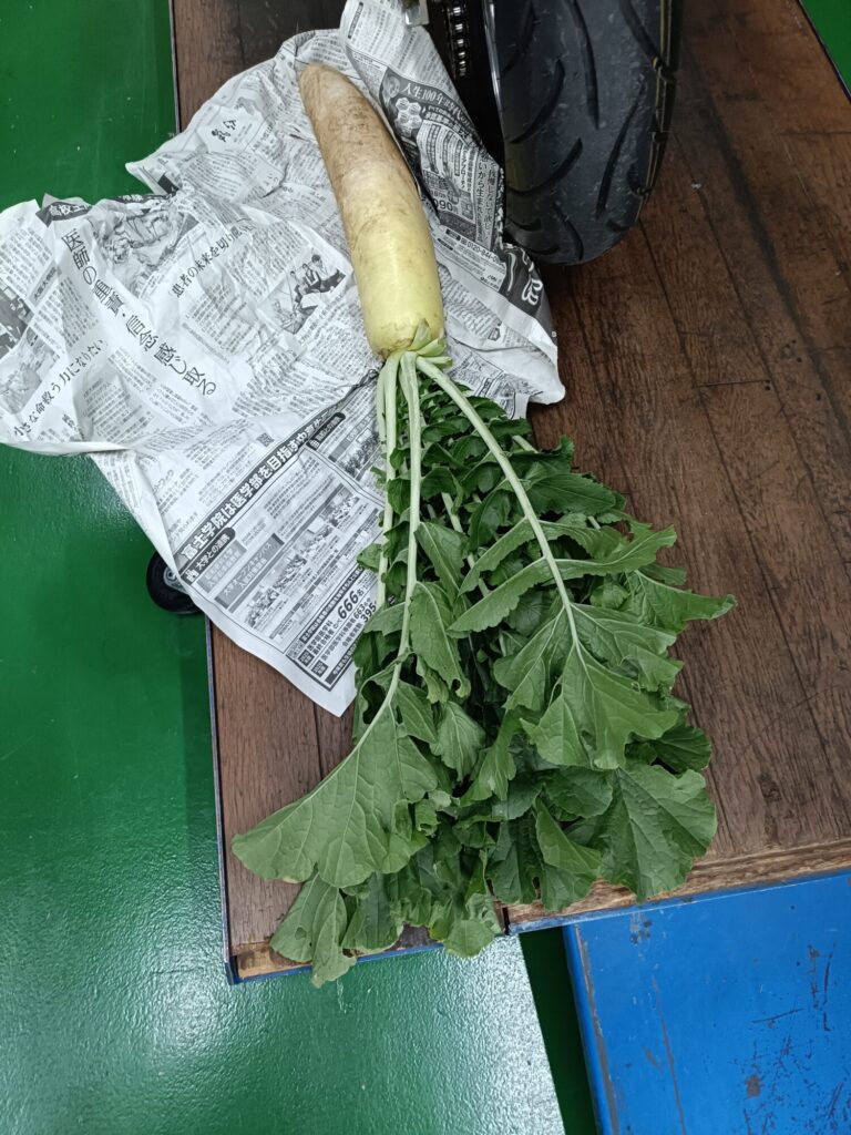 投稿日: 2025年12月1日2025年12月1日 投稿者: okamochi@tensyu本日の賄賂 ↑本日の賄賂の図 今日も収賄! 本日は、畑で採れたて、ダイコンを頂いてしまいました。葉付きが最高です♡ネコにかじられないうちに、サッサとしまいます。皆さま、毎度毎度本当にご馳走様であります。<(_ _)>