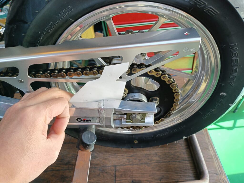 ちょうどチェーンと干渉してしまうので、ギリギリまで
