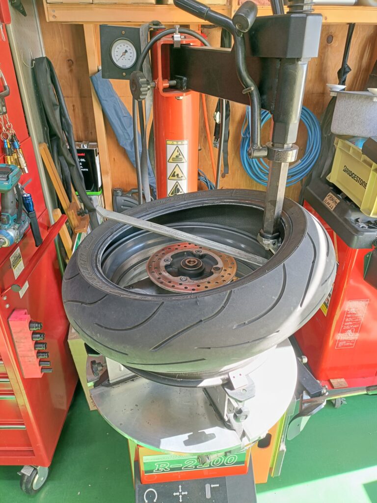 これで、タイヤ自体の一番重部分が判るので、一旦ビードを落として