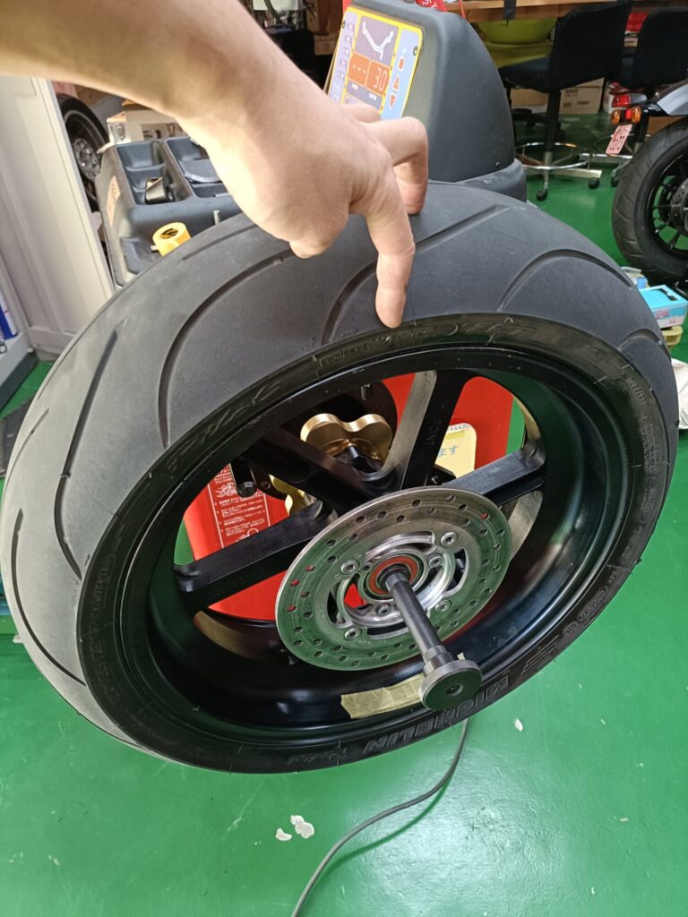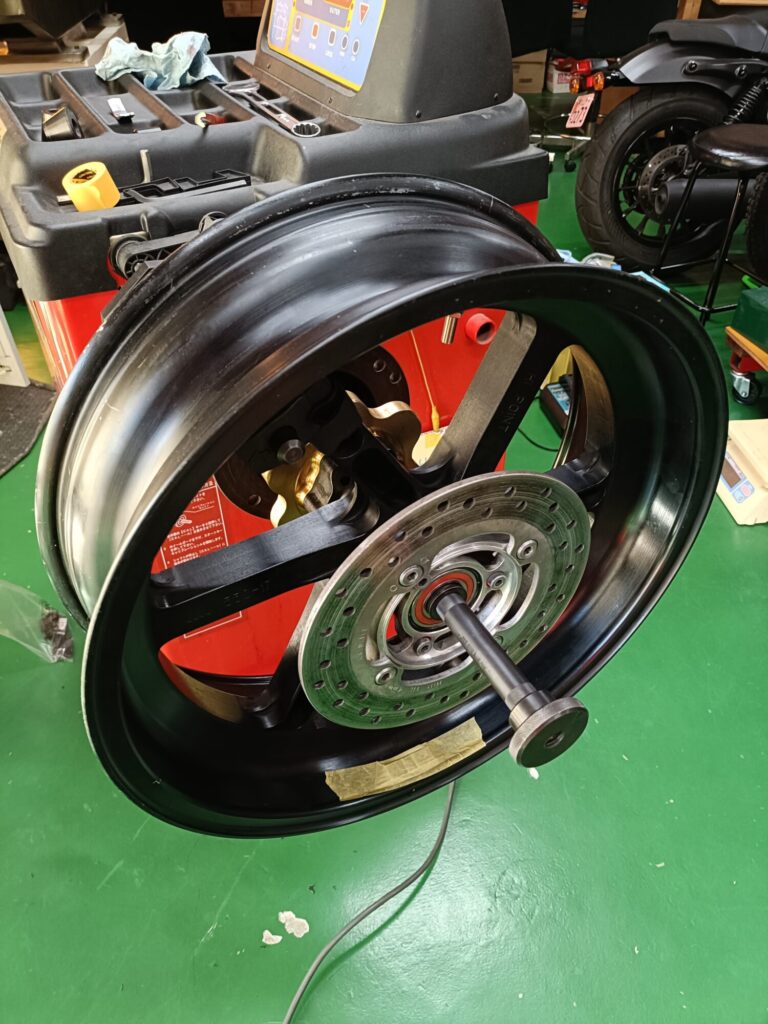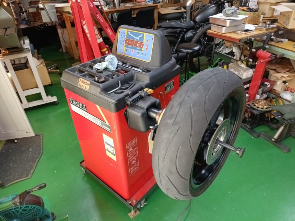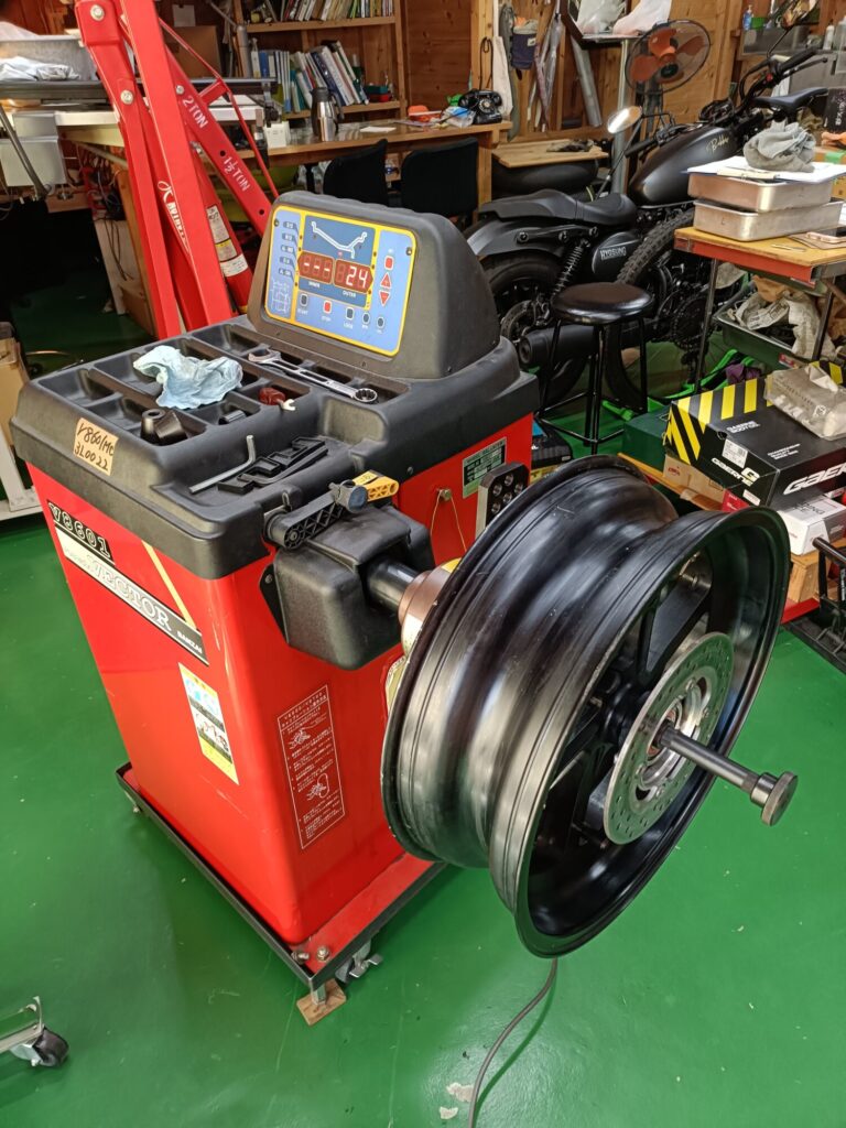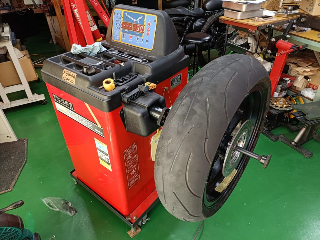 次に、タイヤをホイルに組み込んでアンバランスを確認。