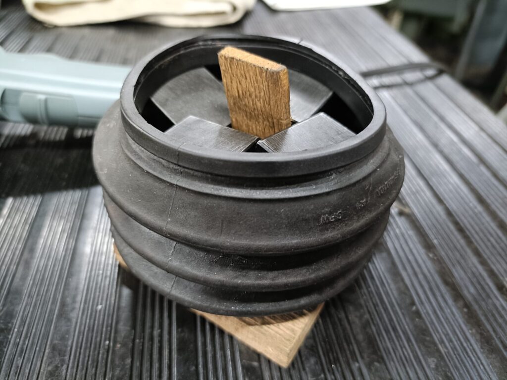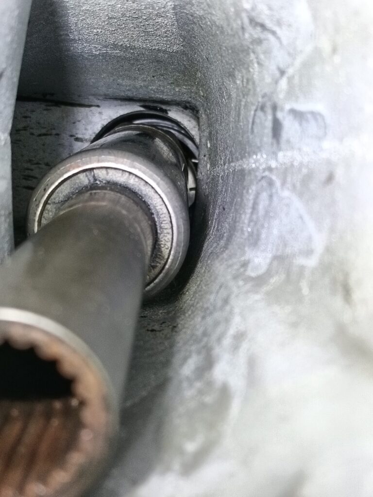 繋いでいるドライブシャフト貫通孔用のラバーブーツが