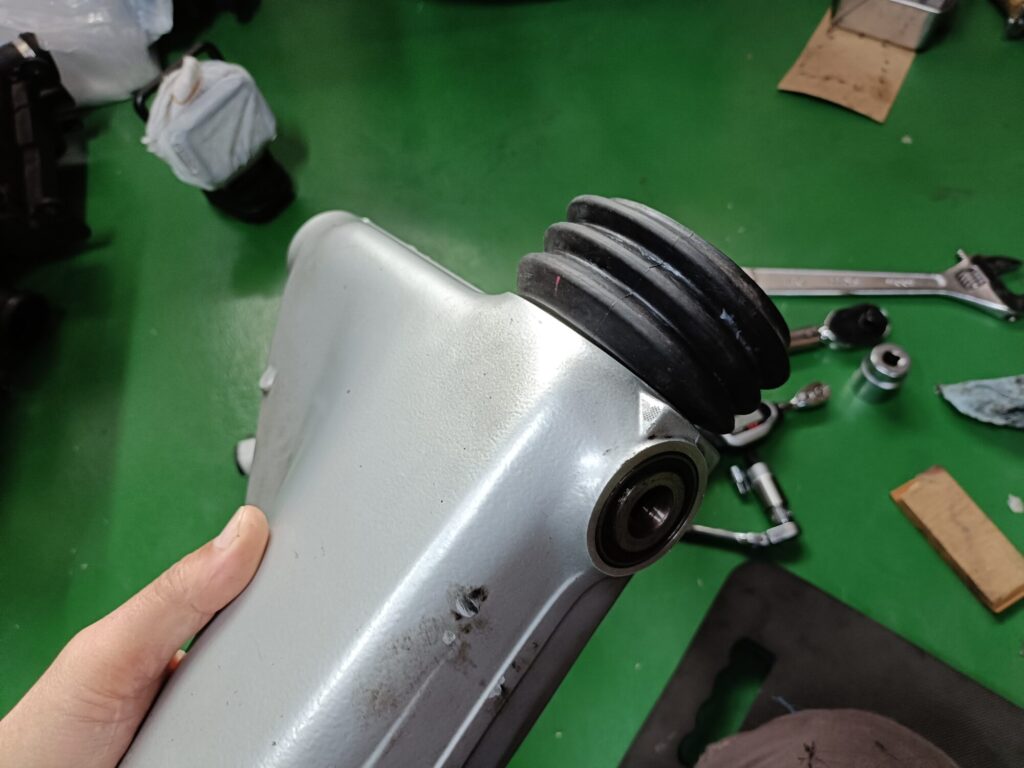 そう、例の抜けそうなブーツ、スイングアームとの嵌合部には