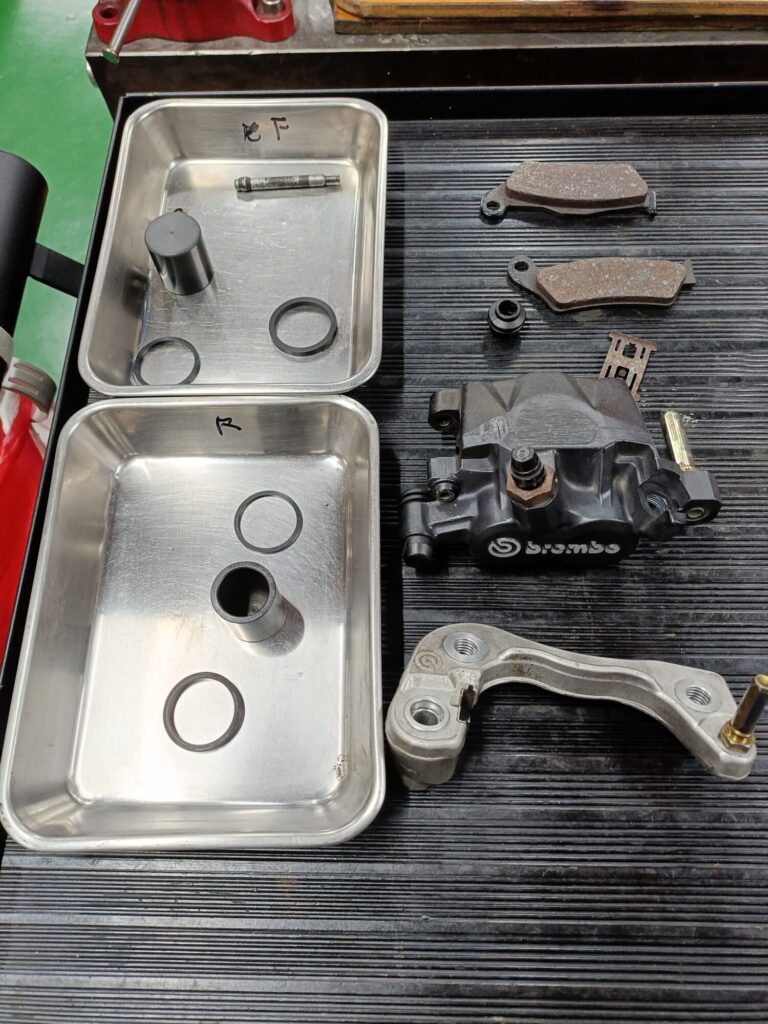とりあえず、キャリパーを分解してキレイにお掃除。