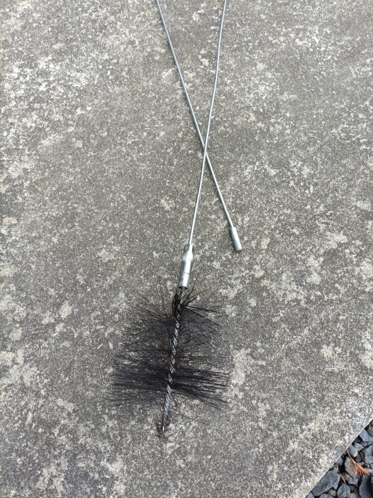 既にくたびれてしまった、煙突内面掃除用のワイヤーの