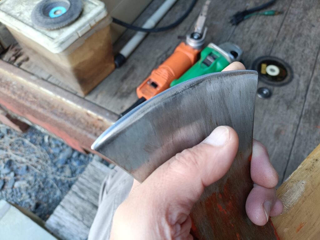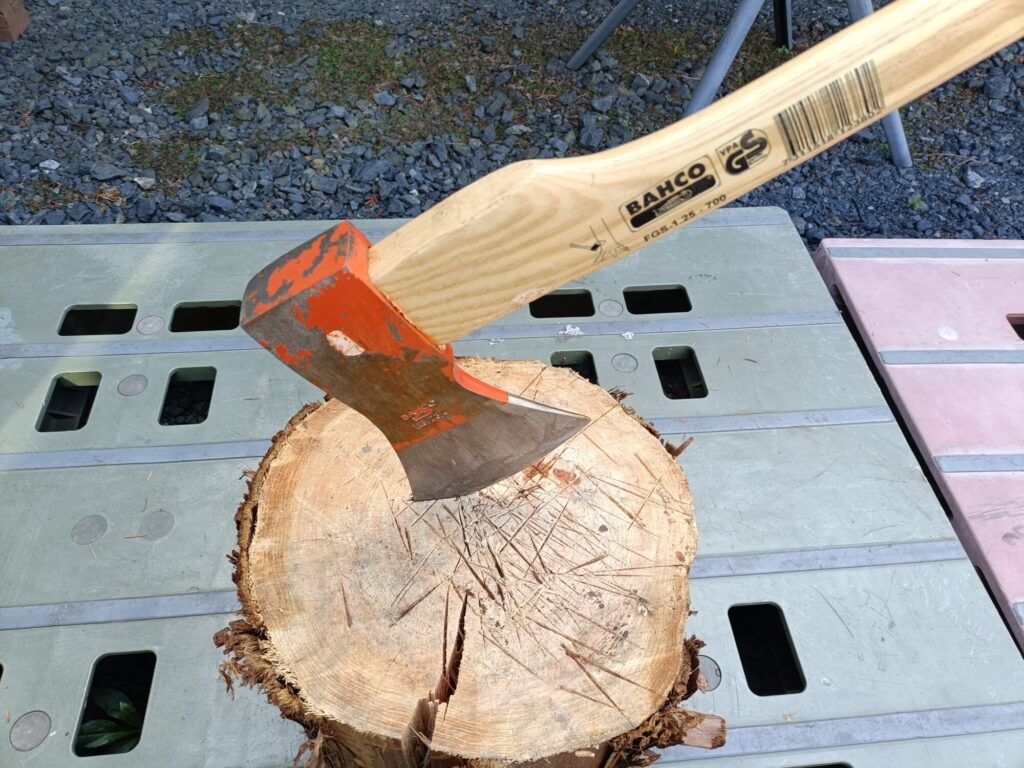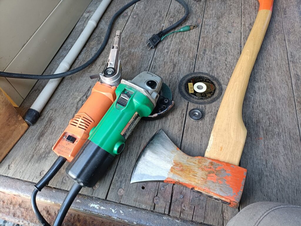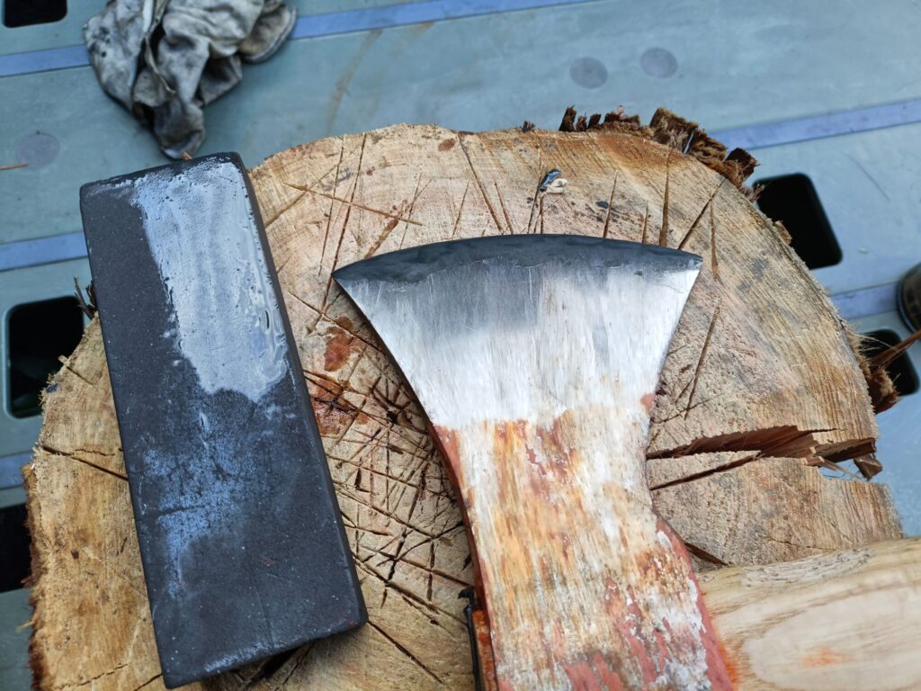 薪割り用の斧の歯が丸まって来たような気がするので、