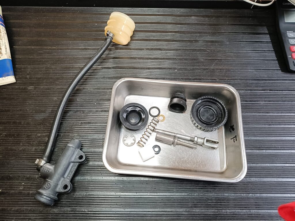 まずはマスターシリンダを分解して、キレイにお掃除。