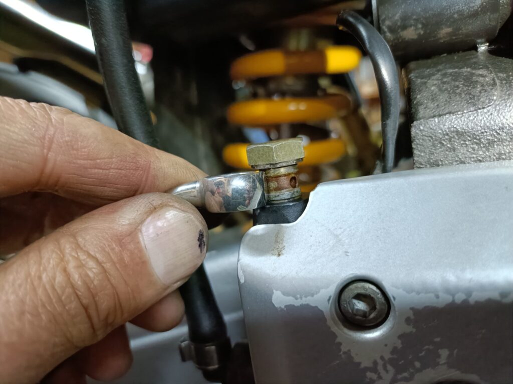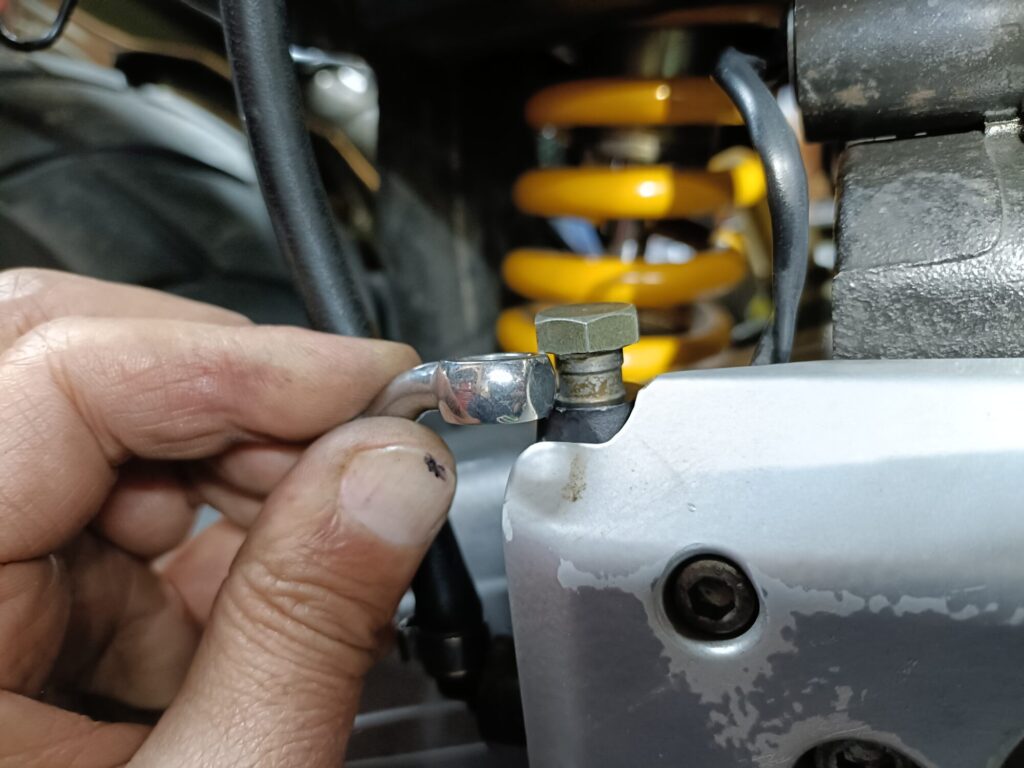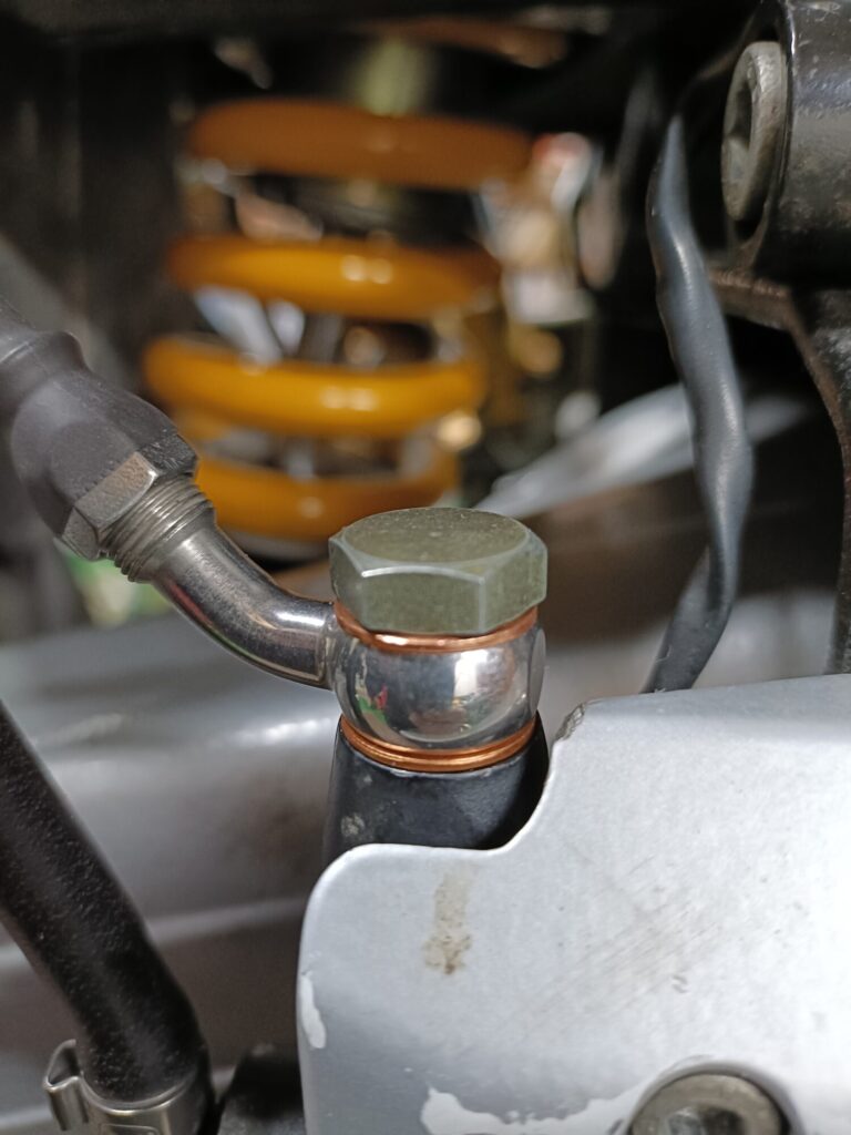 しまう事が多く、今回もそうだったので、バンジョーボルトを削って