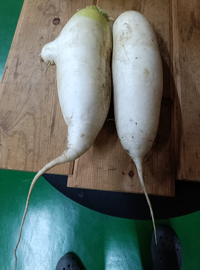 本日は畑で採れたて、ダイコンを2本も頂いてしまいました。
