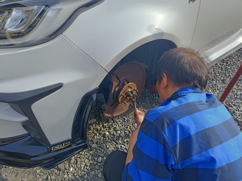 トヨタ GRヤリスのフロントブレーキディスク交換のお手伝いです。
