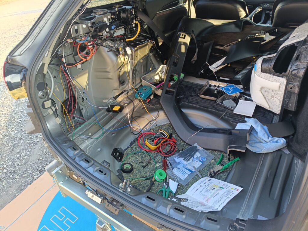 てな事で、リアハッチの内装もある程度剥いで、配線を