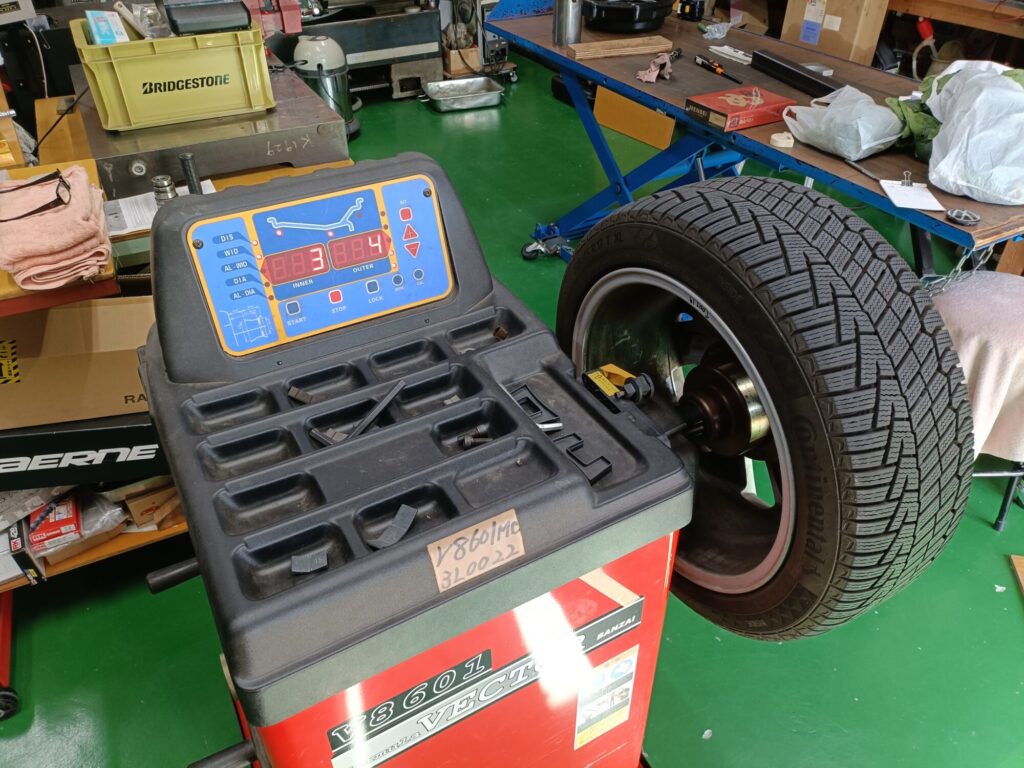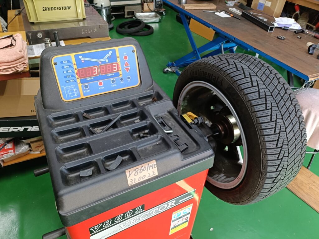 交換した後、タイヤを組み込み。作業前とはホイルのリムとタイヤの
