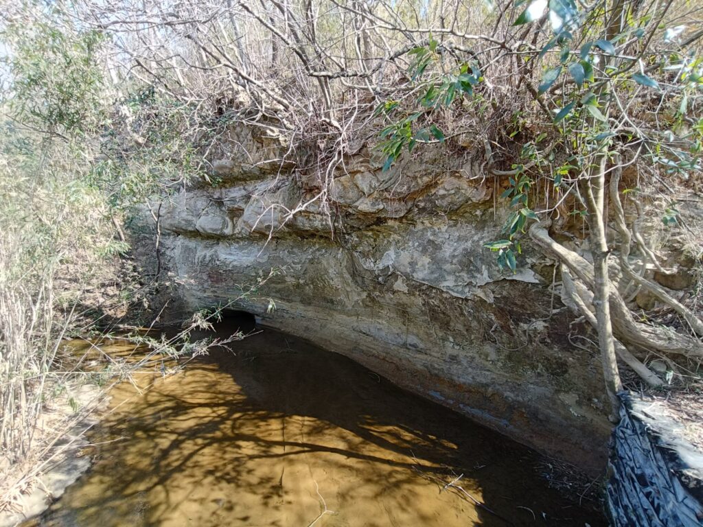 途中から山に上がって、山中を徘徊。途中で凝灰岩の断面が
