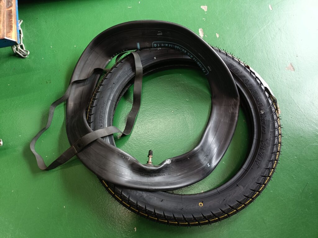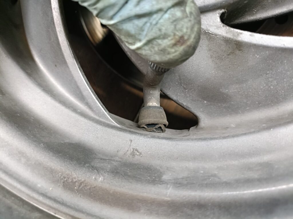 新品タイヤを一本だけ用意して、エアバルブと共にタイヤも交換。