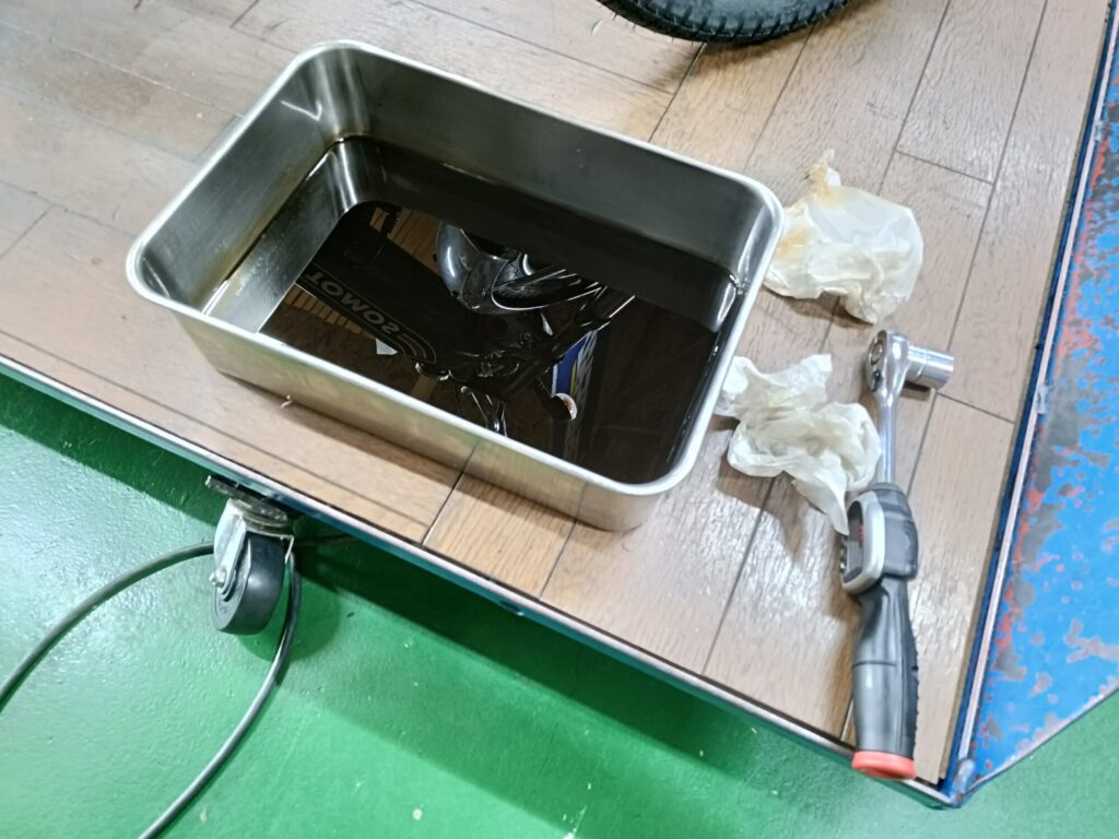 ヤマハの働くスクーター、ギアのエンジンオイル交換のご依頼。